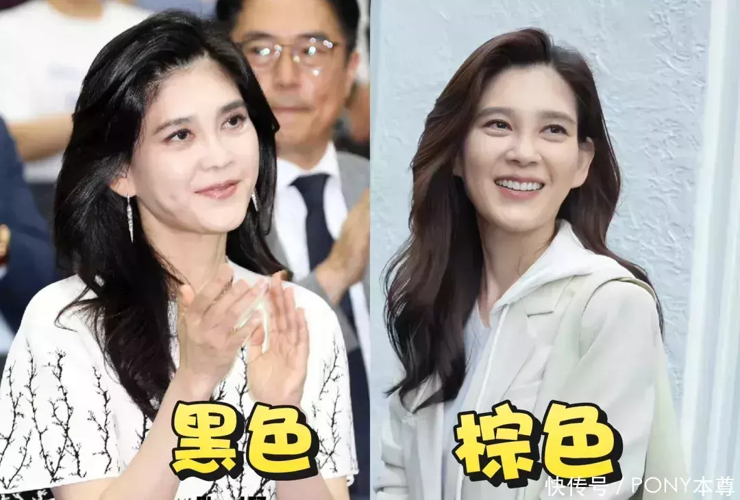 在头发的颜色上,她一直都是深色系,有时是黑色有时是深棕色,展现出一种内敛而高级的美感。