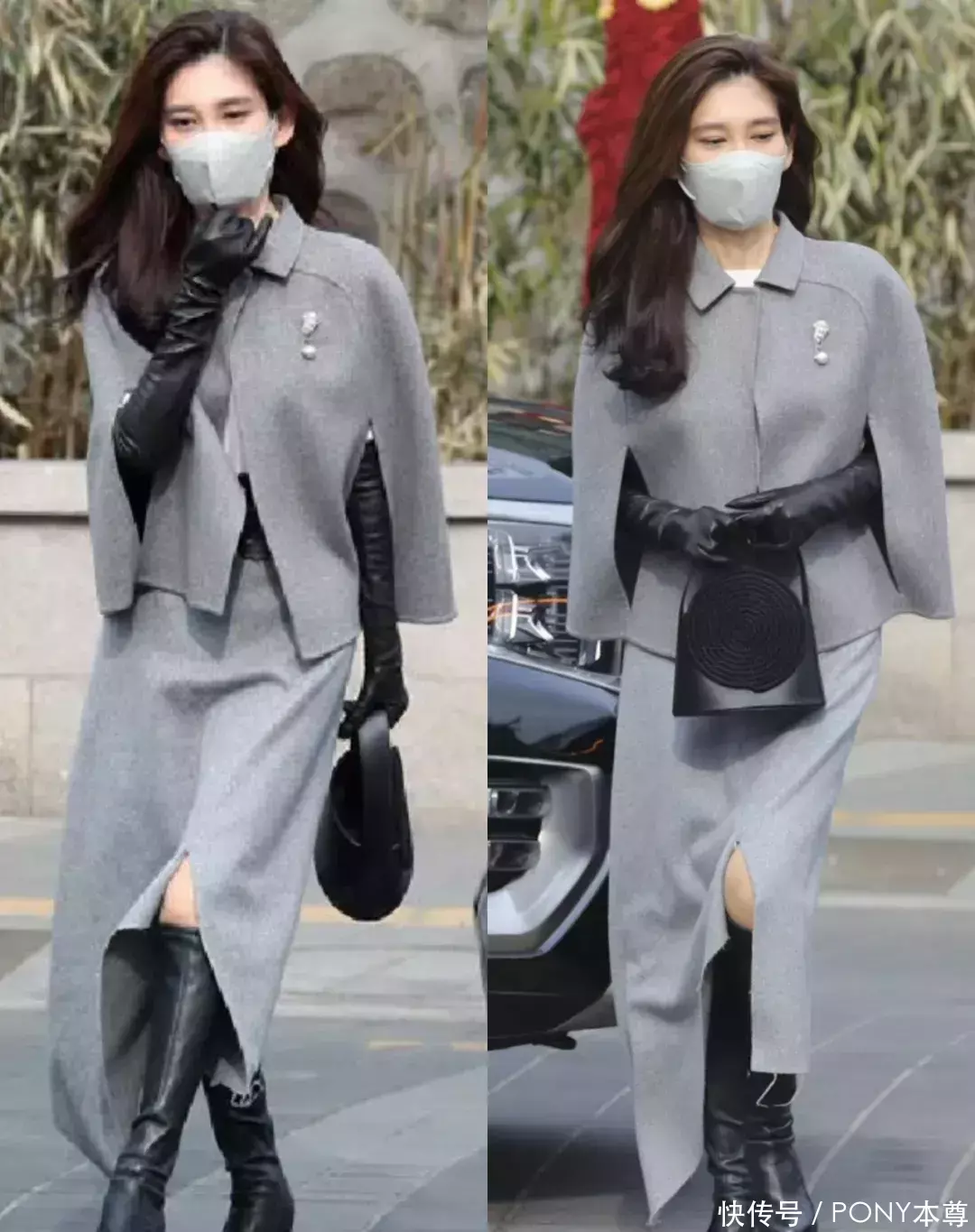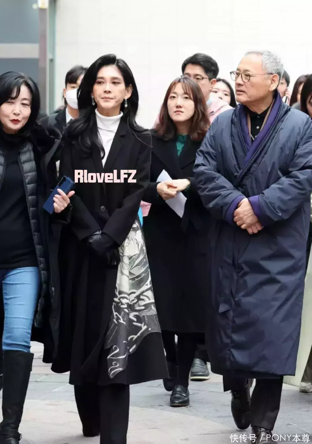 事实上,她选择的大衣,很少是常规的款式,比如这次的蕾丝拼接设计,袖子和大衣的两侧的蕾丝拼接,增加了裙身的膨胀感,让本来很瘦的李富真看起来饱满了许多!
